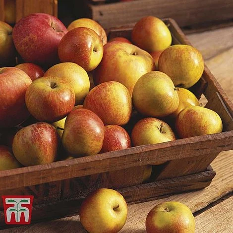 Apple ‘Cox Self Fertile’ produces juicy, crisp dessert fruits that are similar to ‘Cox’s Orange Pippin’, but without the need for a pollination partner. This self fertile variety is rapidly gaining popularity for its late crop of aromatic eating apples that can be harvested from late September into October. An excellent choice for gardens with space for only one fruit tree.