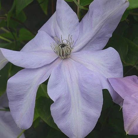 The large mauve flowers of Clematis ‘Shimmer’ are borne in profusion throughout the summer. Flowers begin from a height of around 60cm (2โ) and continue all the way up the stem to create a fabulous display. This beauty has a vigorous but reasonably compact habit making it easily manageable whether you grow it in a container, against a trellis or trained through roses on an archway. Height: 180cm (70″). Spread: 100cm (39″). Pruning group 3.